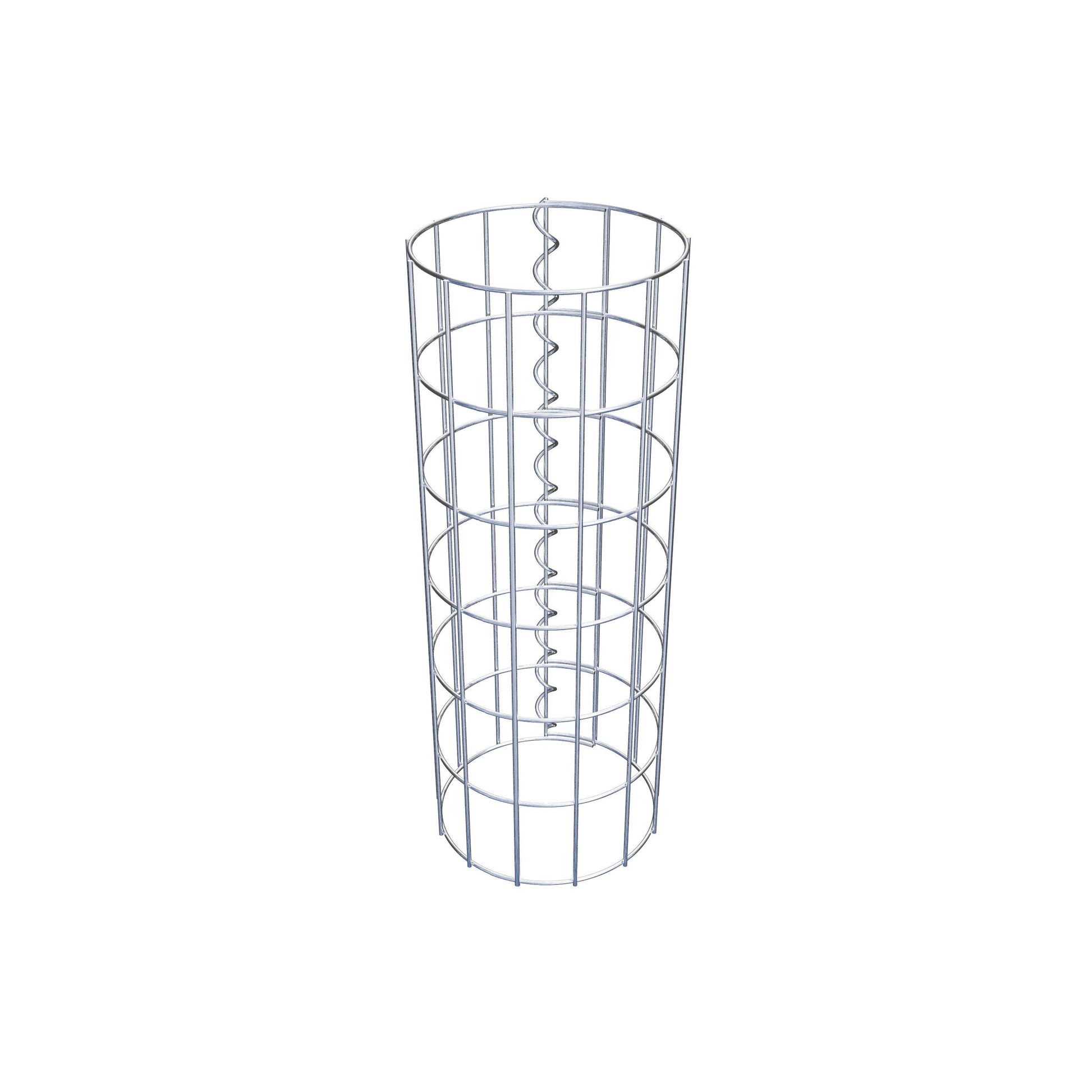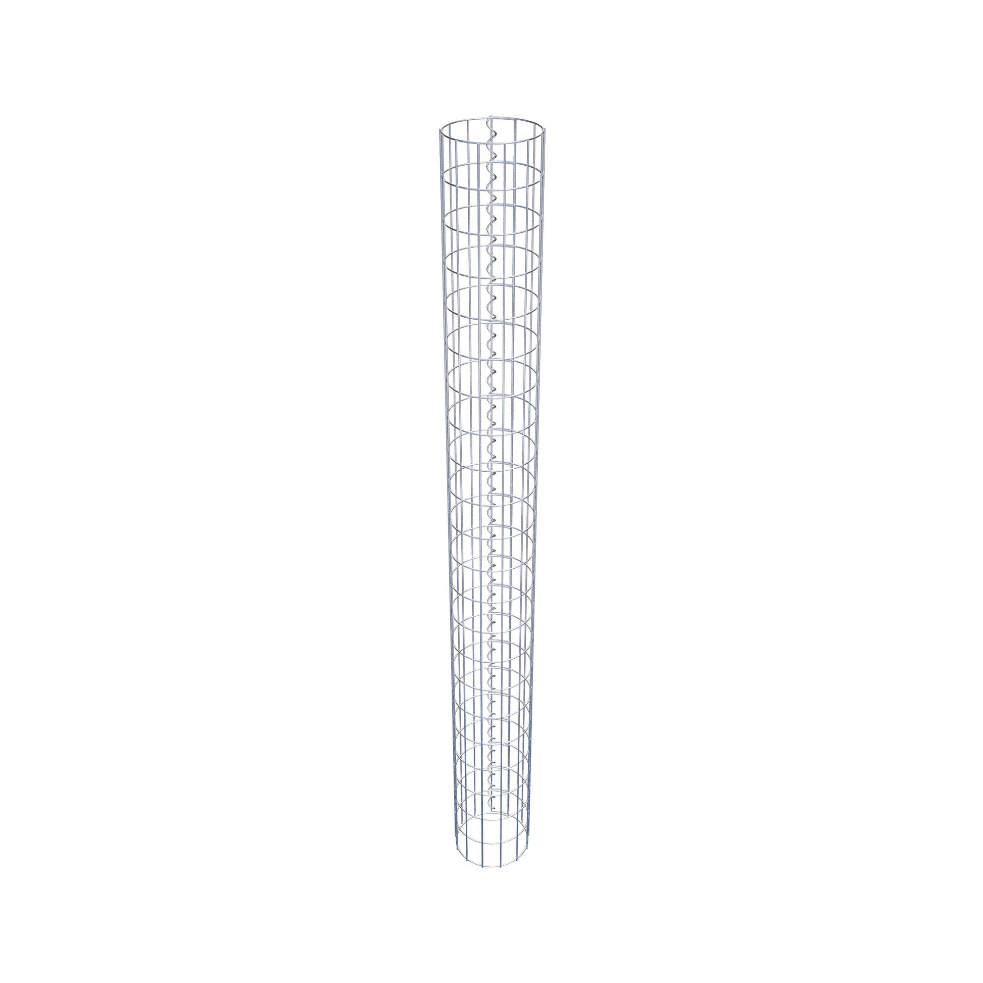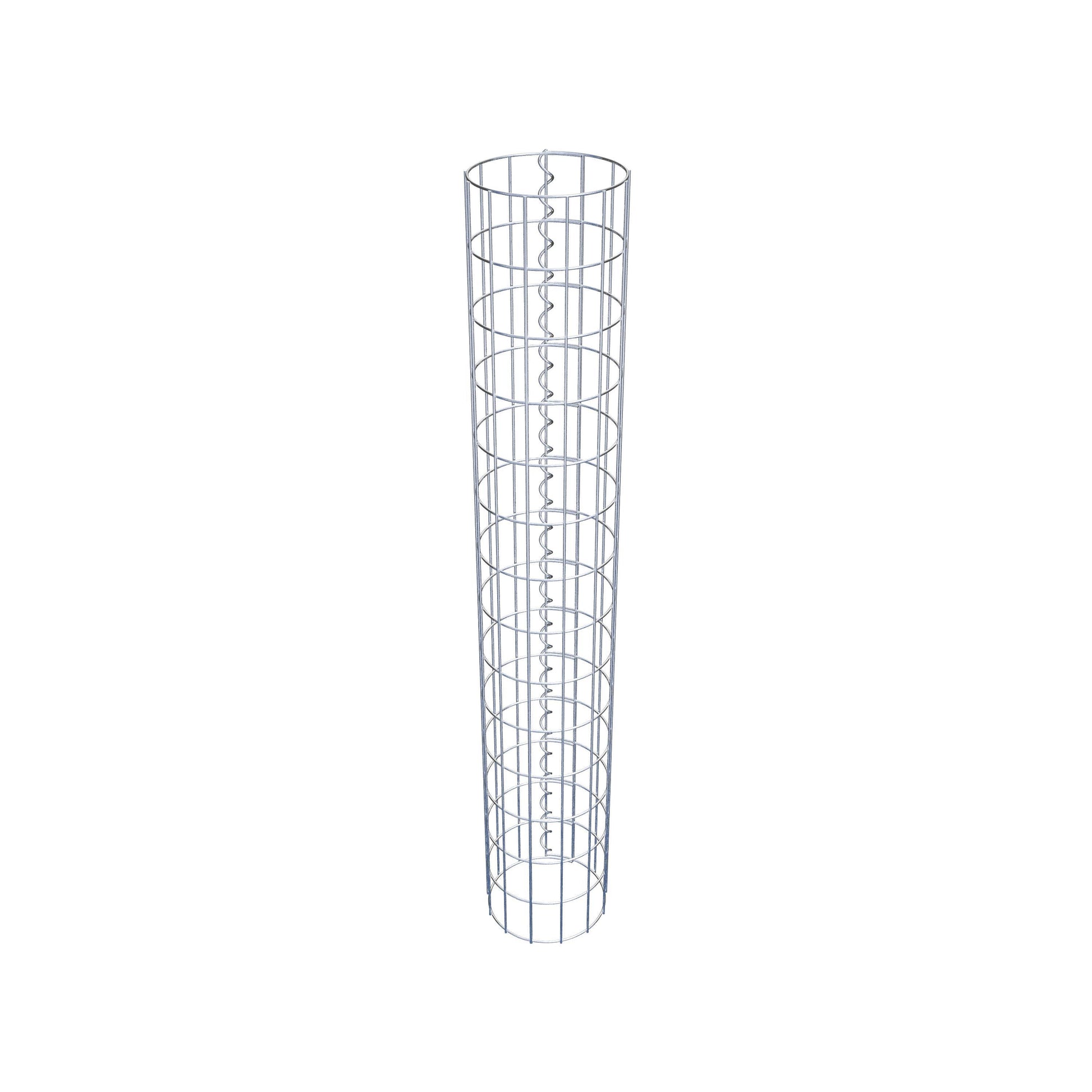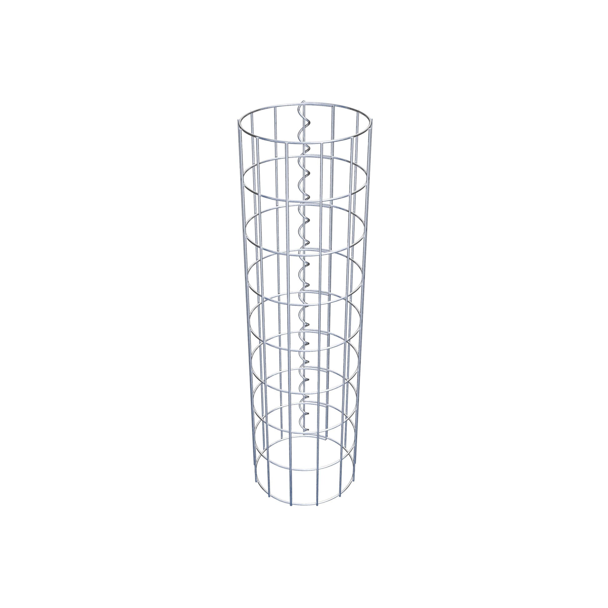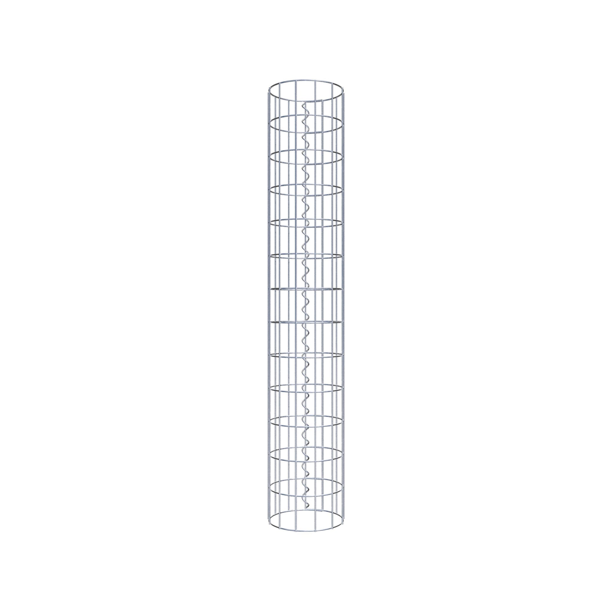 Der seitliche Verschluss erfolgt an der einzigen Überlappungsstelle des Gitters mit einer Spirale, die einfach eingedreht und zusammengedrückt wird. So entsteht eine saubere, sichere und dauerhafte Verbindung. Alternativ kann die Gabionensäule auch mit Klammern verschlossen werden, die separat erhältlich sind. Die Säulen sind nach oben und unten offen – ein Bodengitter oder Deckel ist nicht erforderlich und daher nicht im Lieferumfang enthalten.