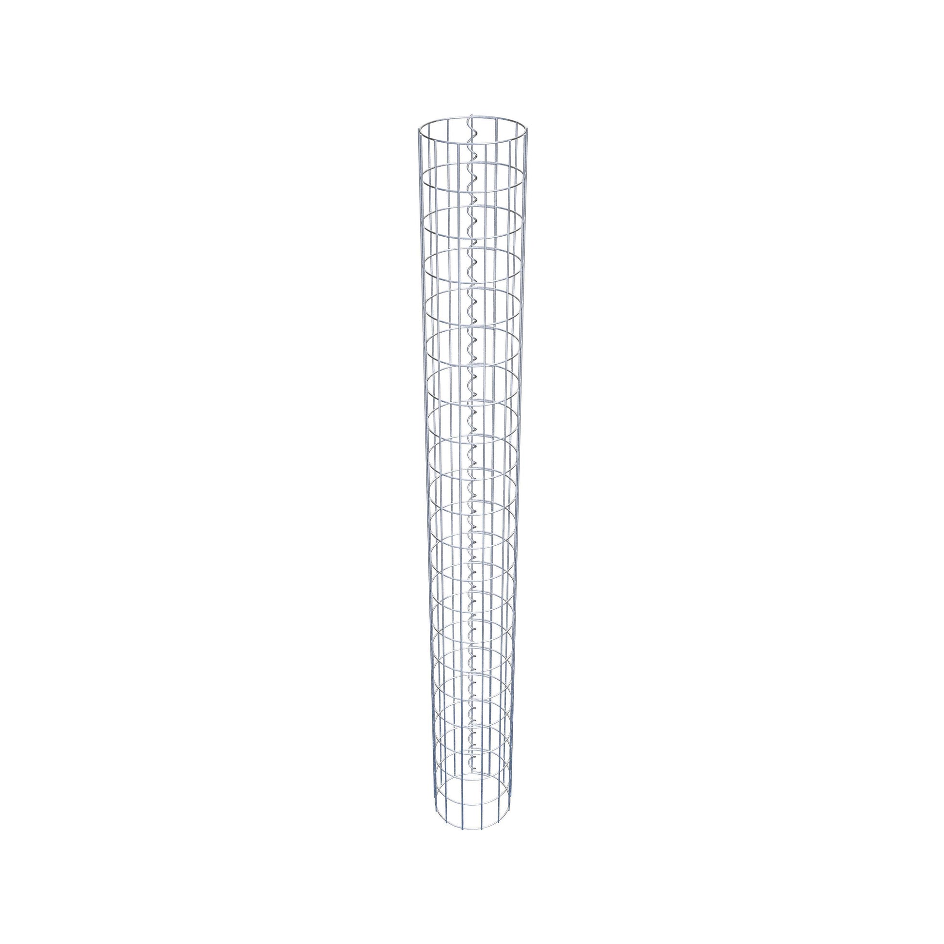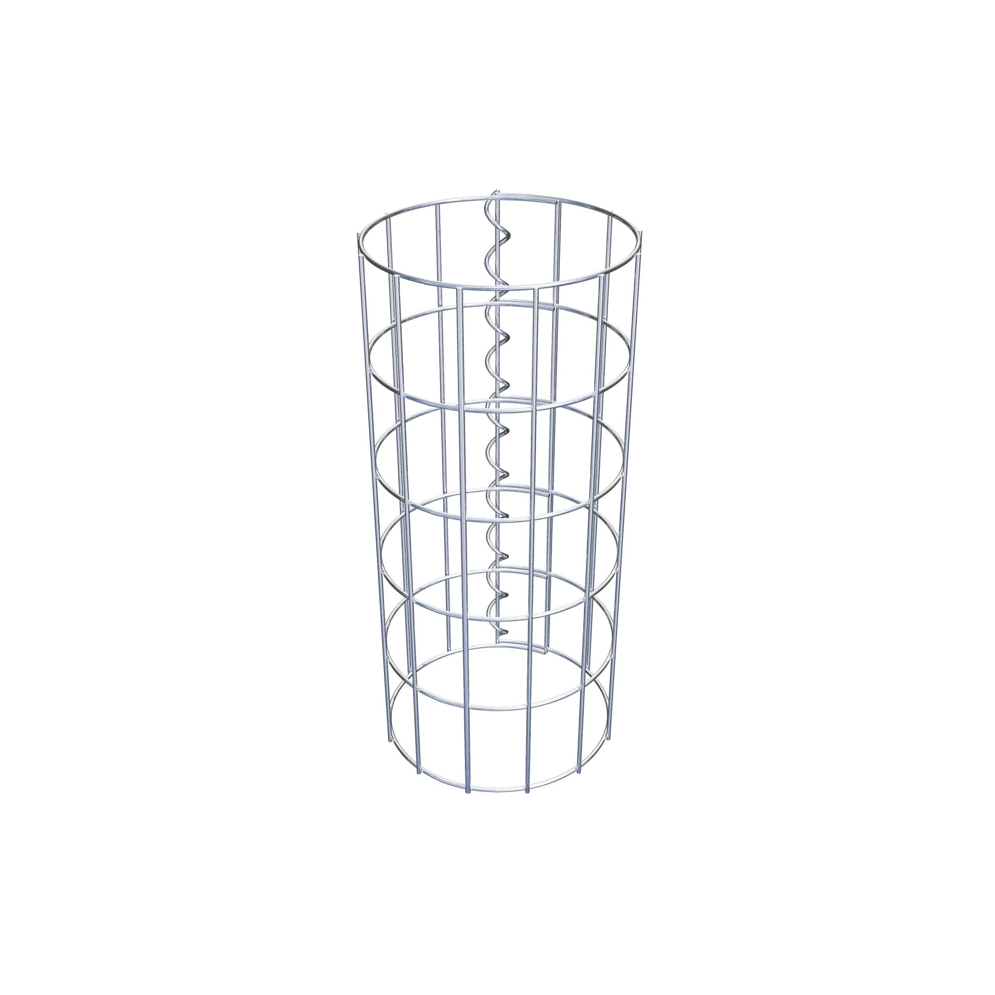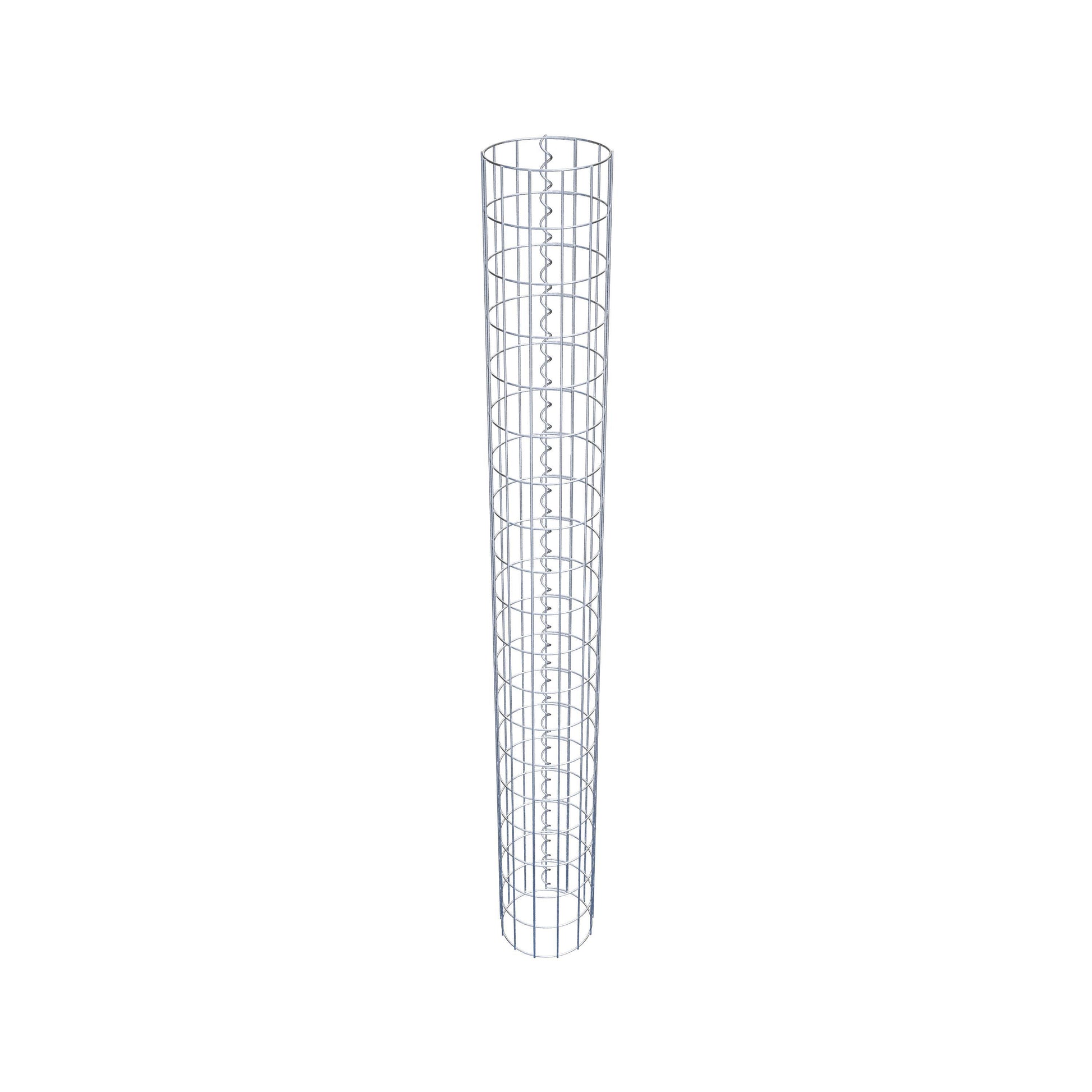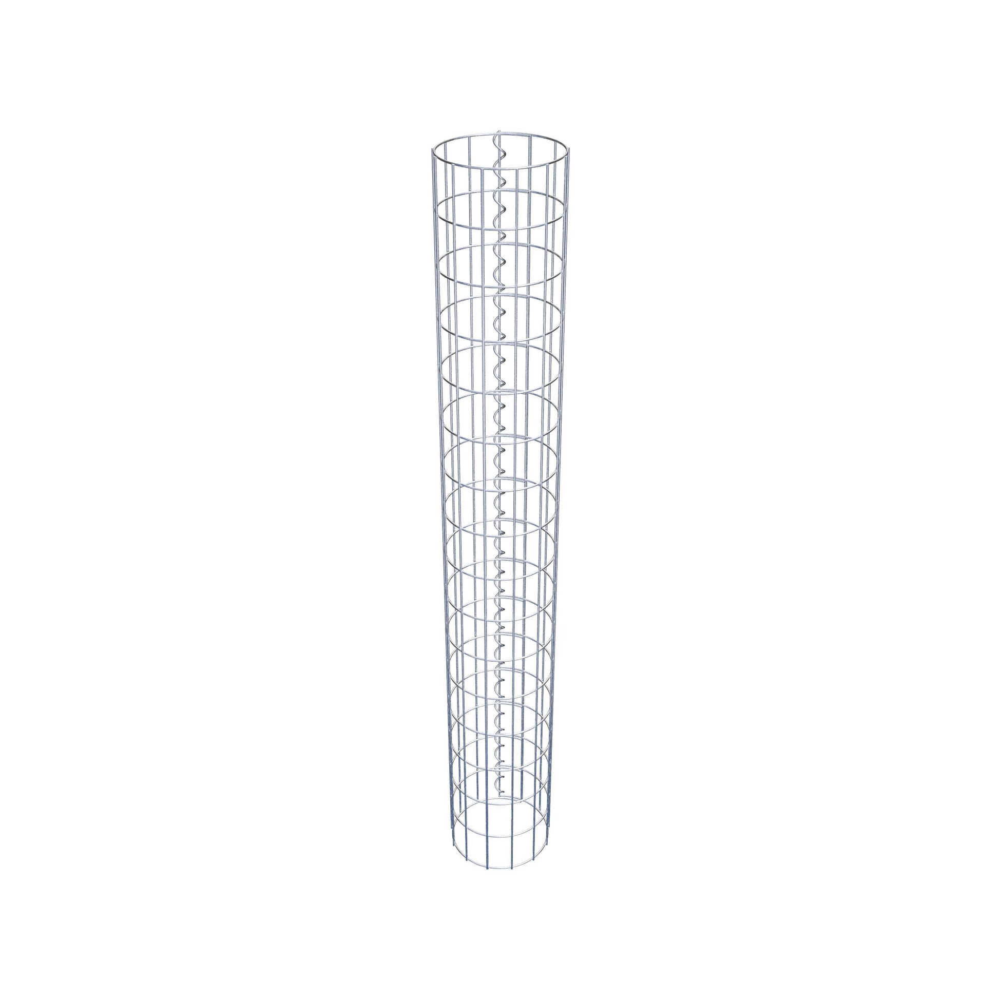 Der seitliche Verschluss erfolgt an der einzigen Überlappungsstelle des Gitters mit einer Spirale, die einfach eingedreht und zusammengedrückt wird. So entsteht eine saubere, sichere und dauerhafte Verbindung. Alternativ kann die Gabionensäule auch mit Klammern verschlossen werden, die separat erhältlich sind. Die Säulen sind nach oben und unten offen – ein Bodengitter oder Deckel ist nicht erforderlich und daher nicht im Lieferumfang enthalten.