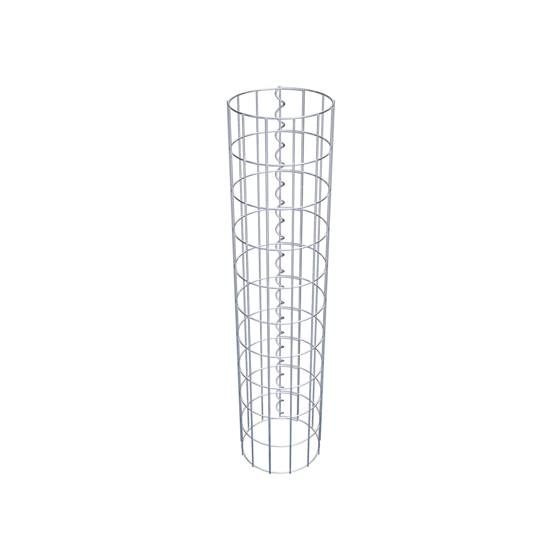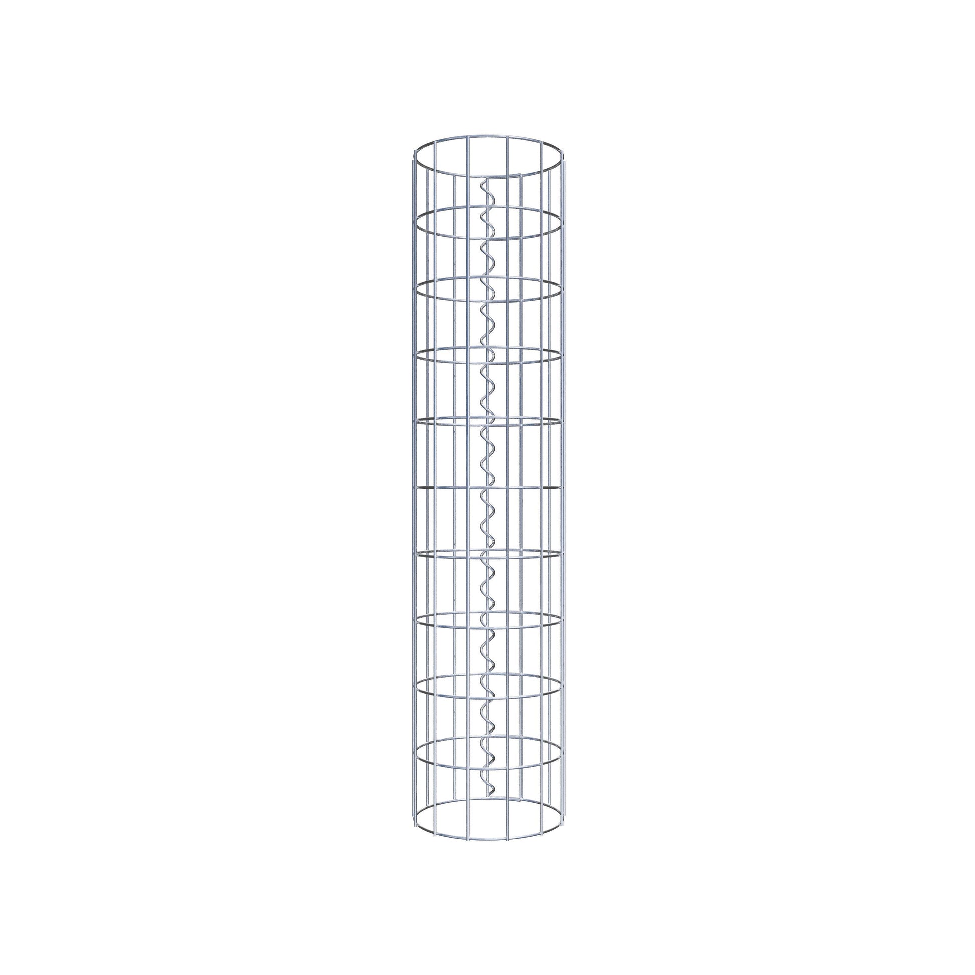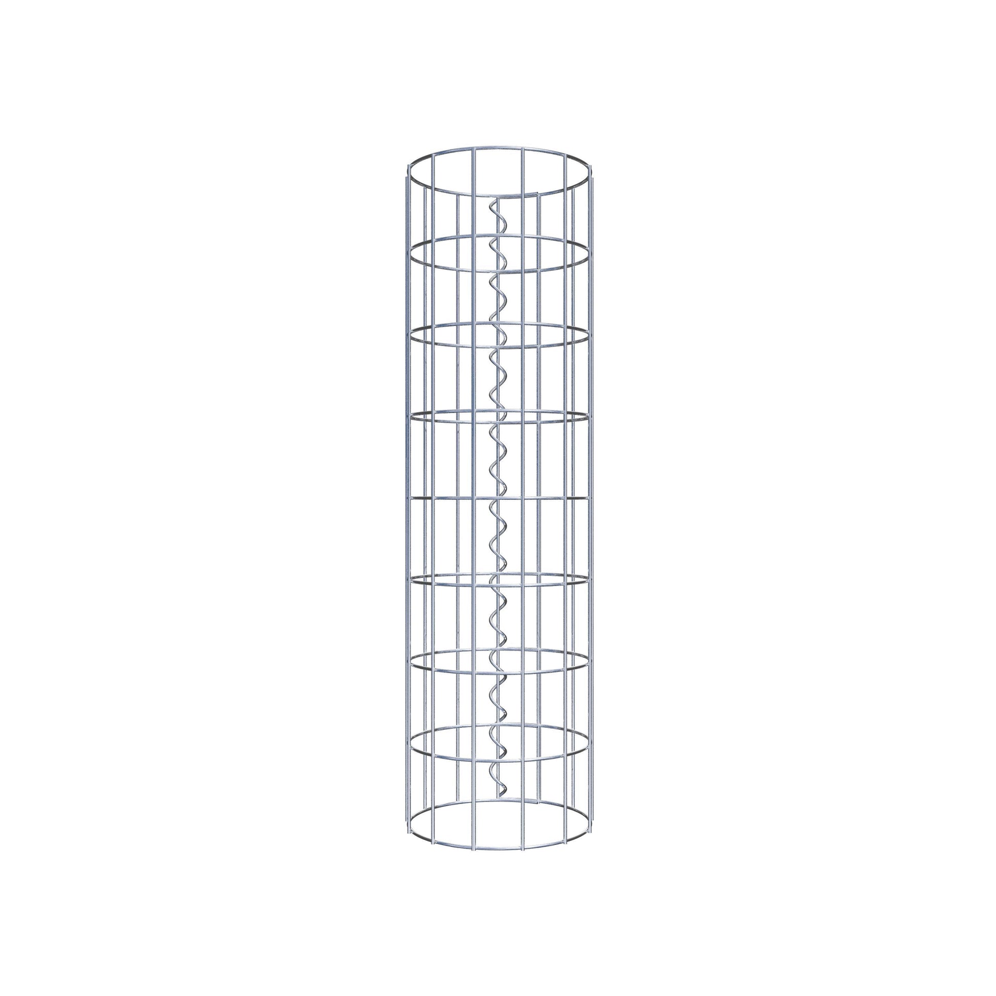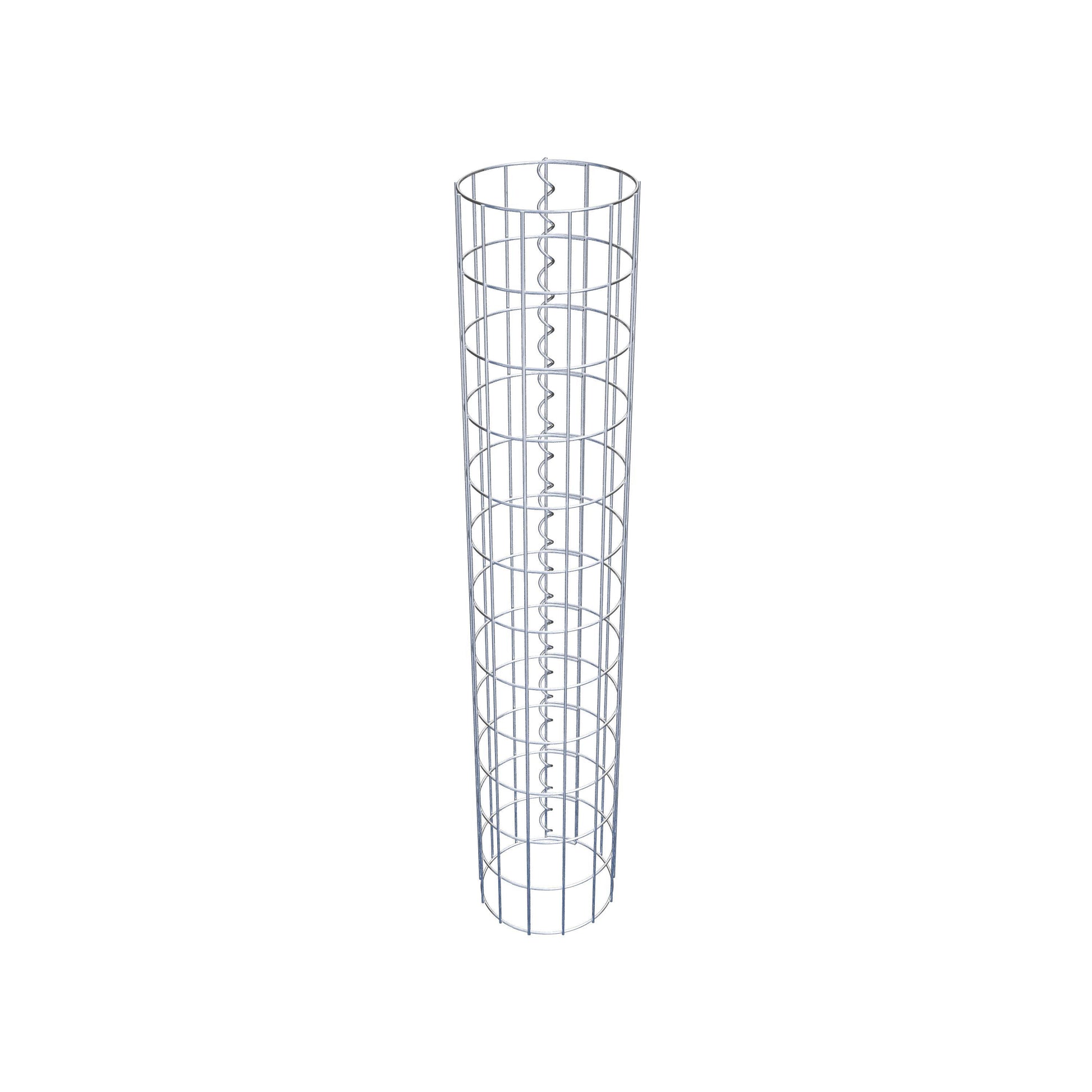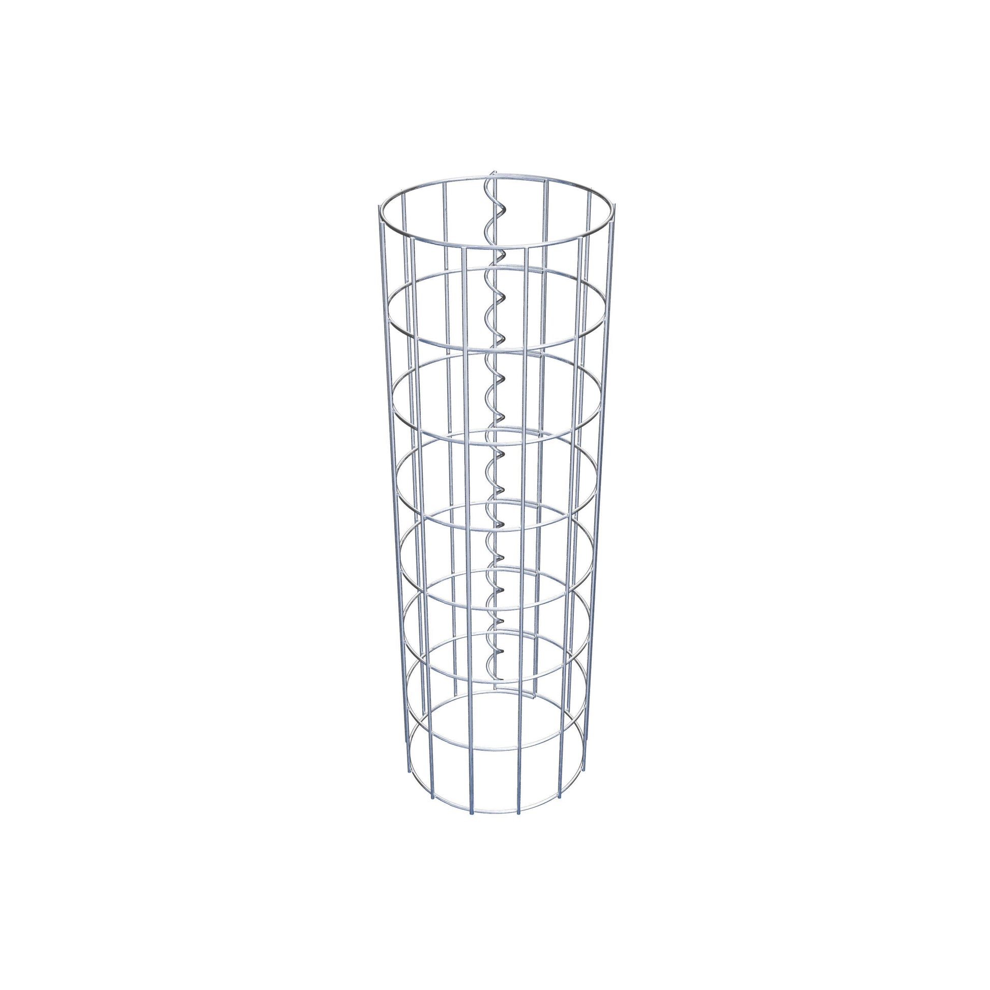 Der seitliche Verschluss erfolgt an der einzigen Überlappungsstelle des Gitters mit einer Spirale, die einfach eingedreht und zusammengedrückt wird. So entsteht eine saubere, sichere und dauerhafte Verbindung. Alternativ kann die Gabionensäule auch mit Klammern verschlossen werden, die separat erhältlich sind. Die Säulen sind nach oben und unten offen – ein Bodengitter oder Deckel ist nicht erforderlich und daher nicht im Lieferumfang enthalten.