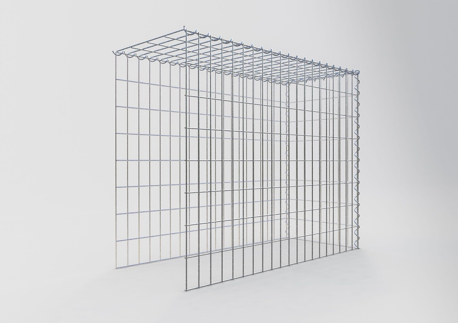 Este gavión no tiene rejilla frontal ni en la base. Esto permite que su gavión crezca tanto en longitud como en altura. Tenga en cuenta que el