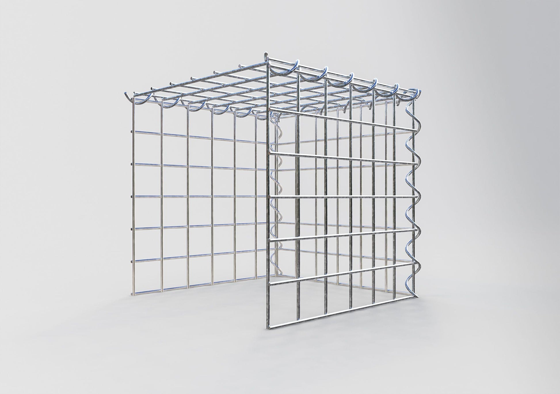 A este gavión le faltan una rejilla delantera e inferior. Esto permite que su gavión crezca tanto en longitud como en altura. Tenga en cuenta que el