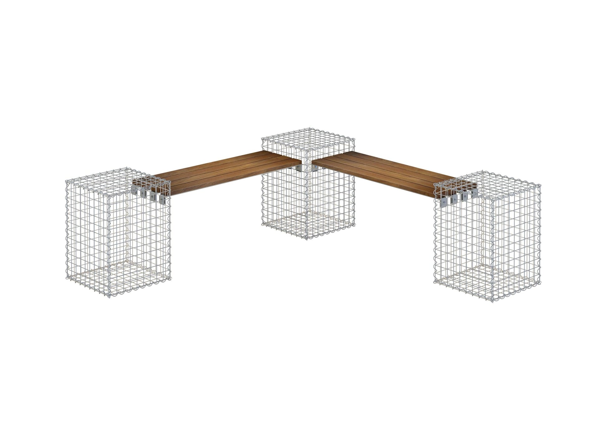 Moderno y versátil - banco de gaviones con 3 gaviones en espiral de madera de Cumarú