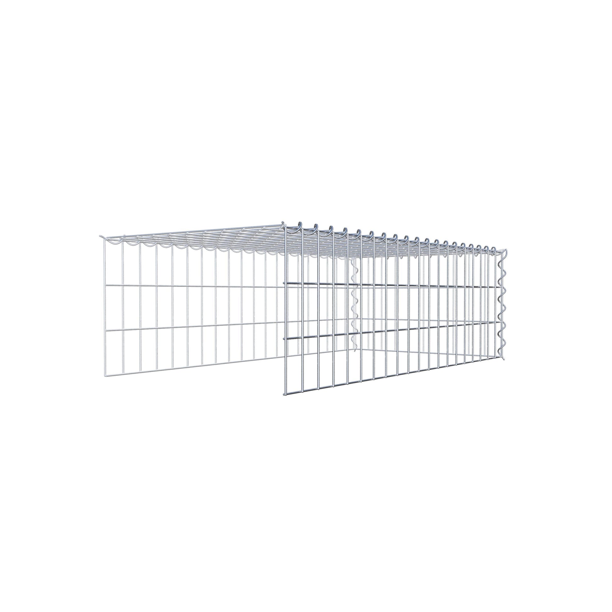 • Remarque : pas de propre grille de fond ni de grille frontale - la liaison se fait par la grille du couvercle et la fermeture du gabion inférieur ainsi que par la fermeture du gabion latéral.