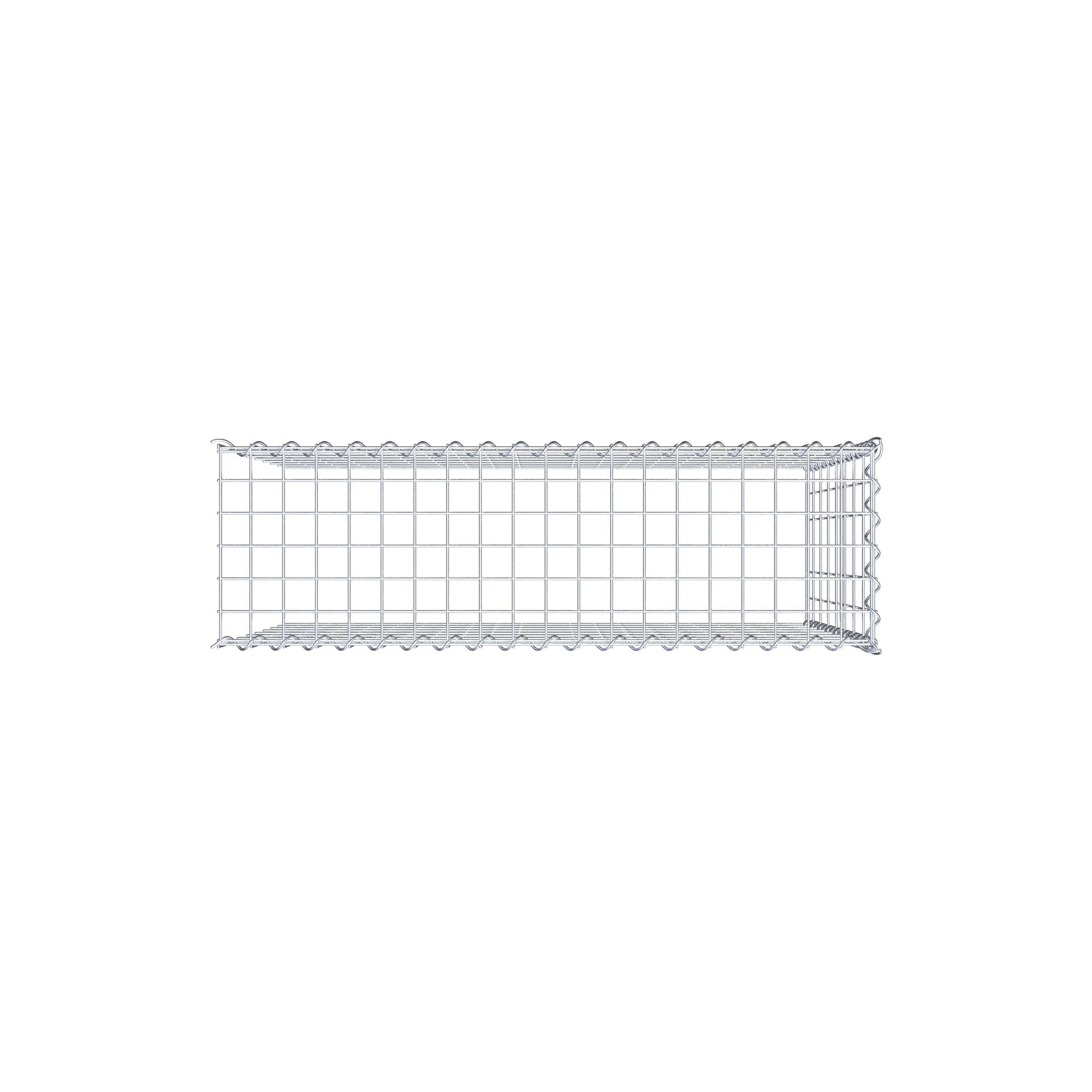 - Remarque : pas de propre grille de fond ni de grille frontale - la liaison se fait par la grille du couvercle et la fermeture du gabion inférieur ainsi que par la fermeture du gabion latéral.