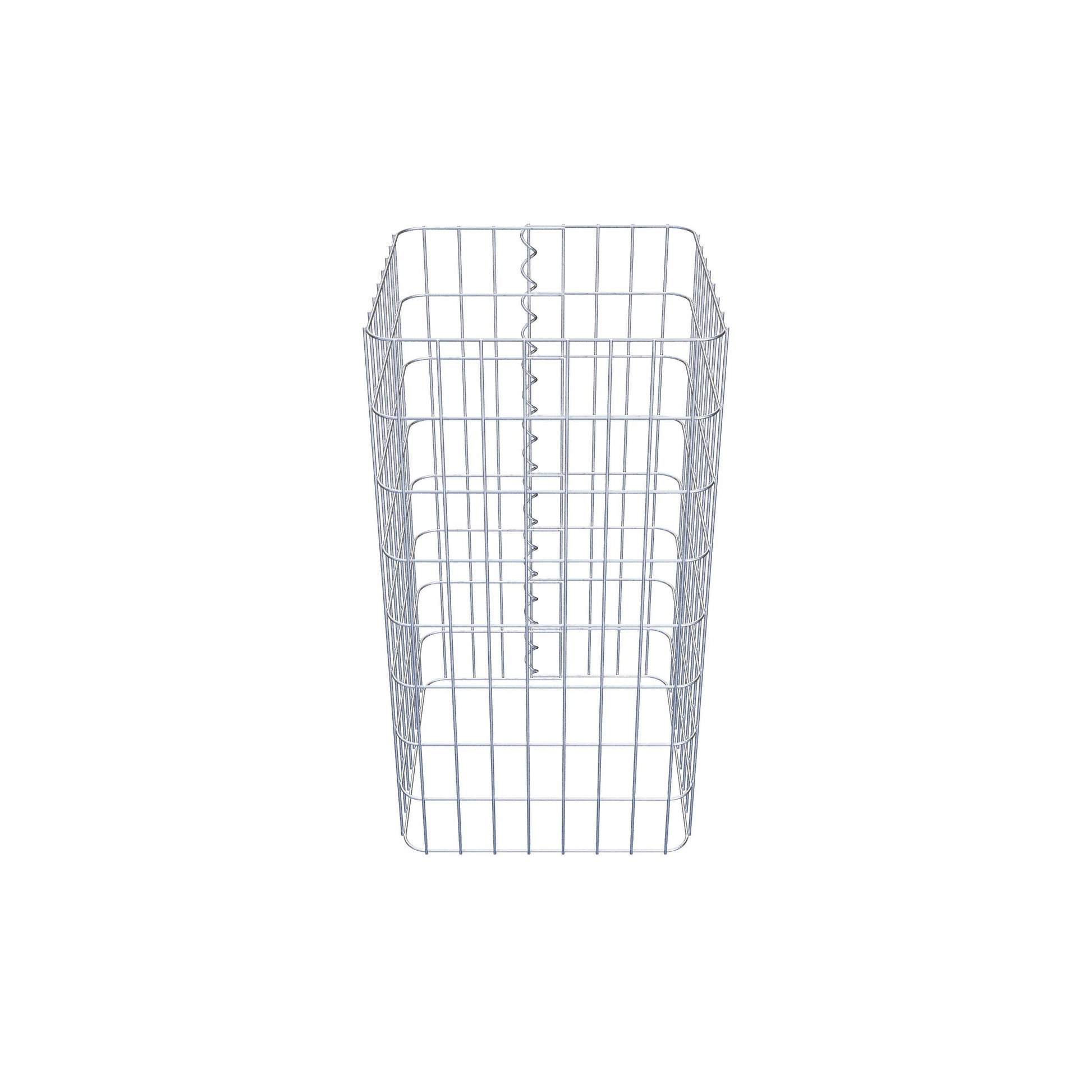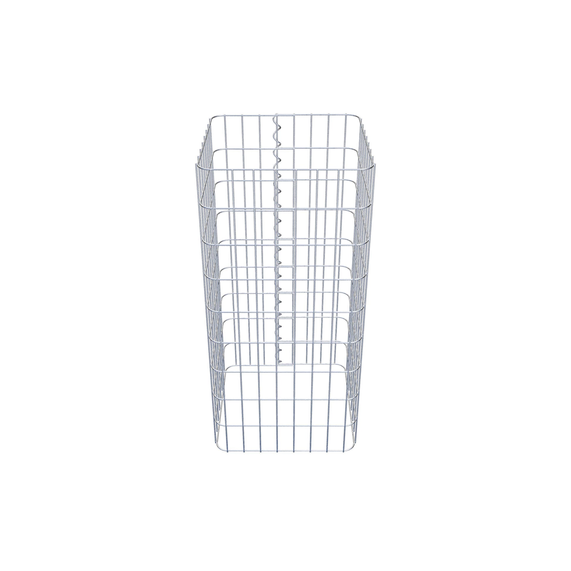 La fermeture latérale s'effectue au seul point de chevauchement du grillage avec une spirale qu'il suffit de visser et de comprimer. On obtient ainsi un assemblage propre, sûr et durable. Il est également possible de fermer la colonne de gabion à l'aide d'agrafes, disponibles séparément. Les colonnes sont ouvertes vers le haut et vers le bas - une grille de fond ou un couvercle n'est pas nécessaire et n'est donc pas inclus dans la livraison. Si nécessaire, un couvercle peut être acheté en supplément.