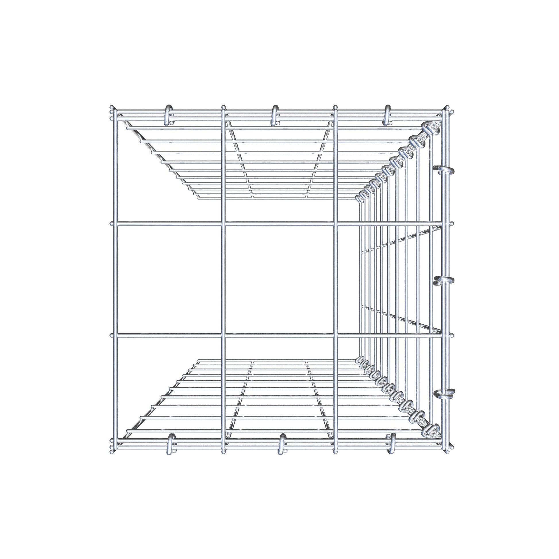This gabion is missing a front and bottom grille. This allows your gabion to grow in both length and height. Please note that the