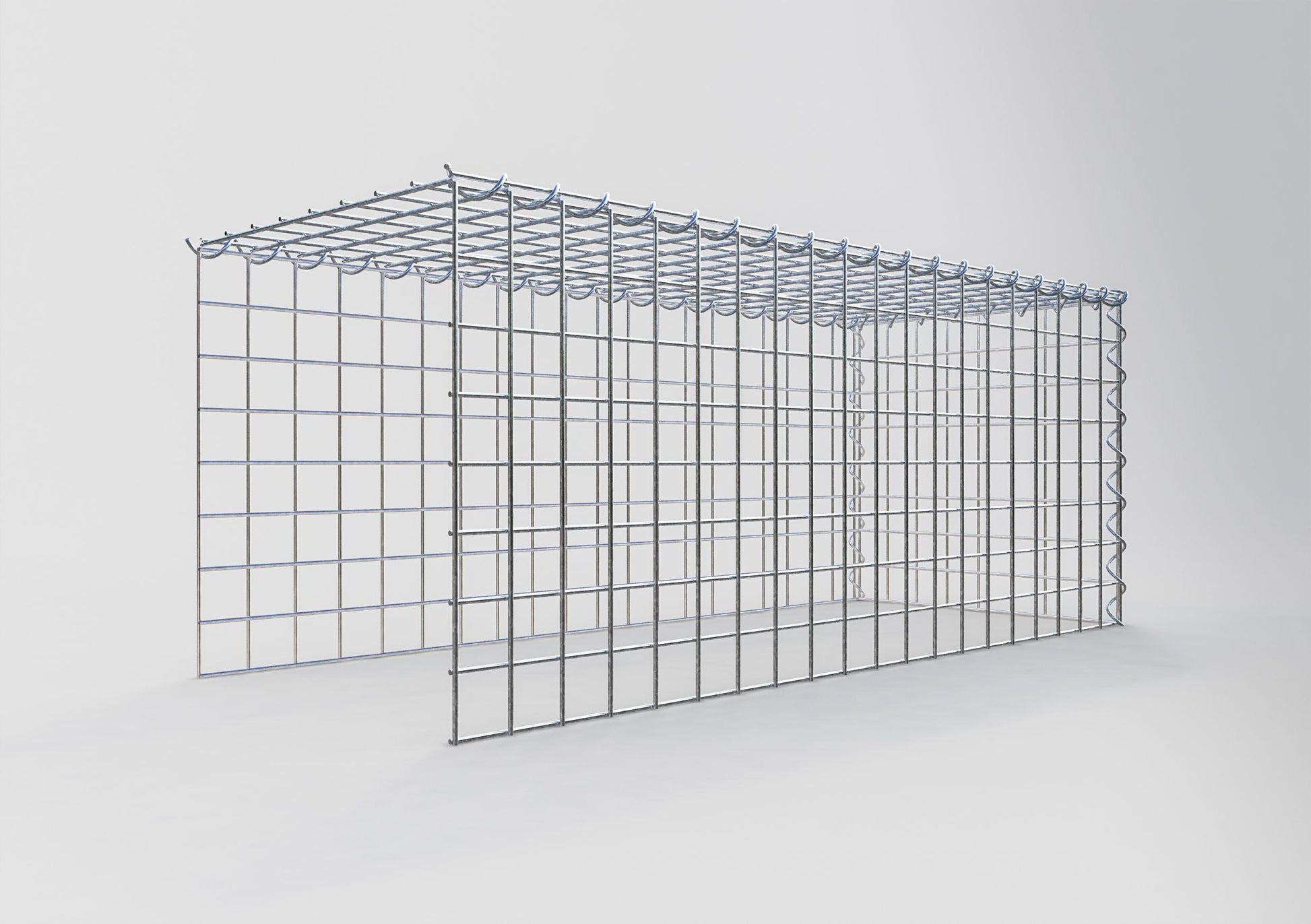 This gabion is missing a front and bottom grille. This allows your gabion to grow in both length and height. Please note that the