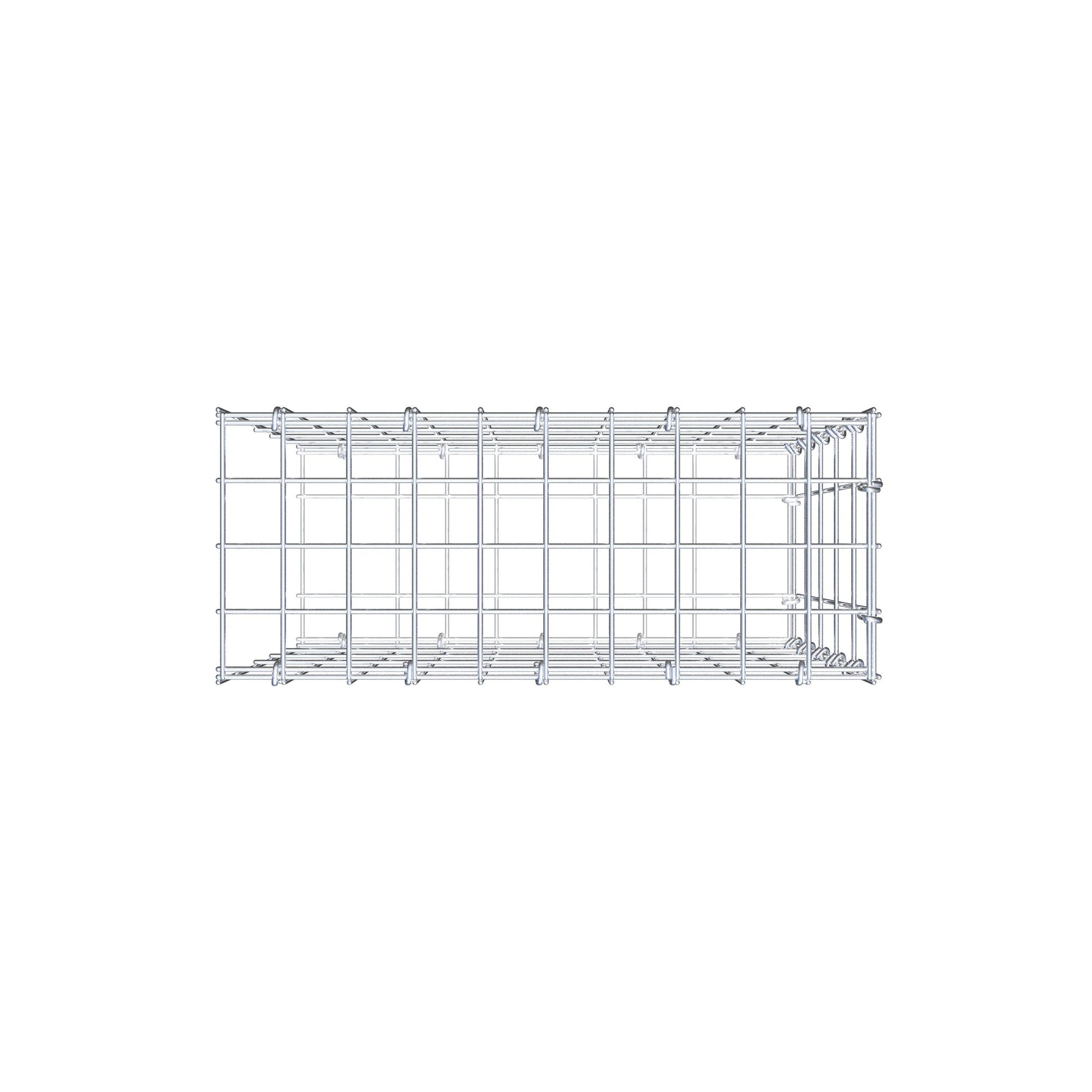 O gabião anexado tem a mesma profundidade que o gabião adjacente.