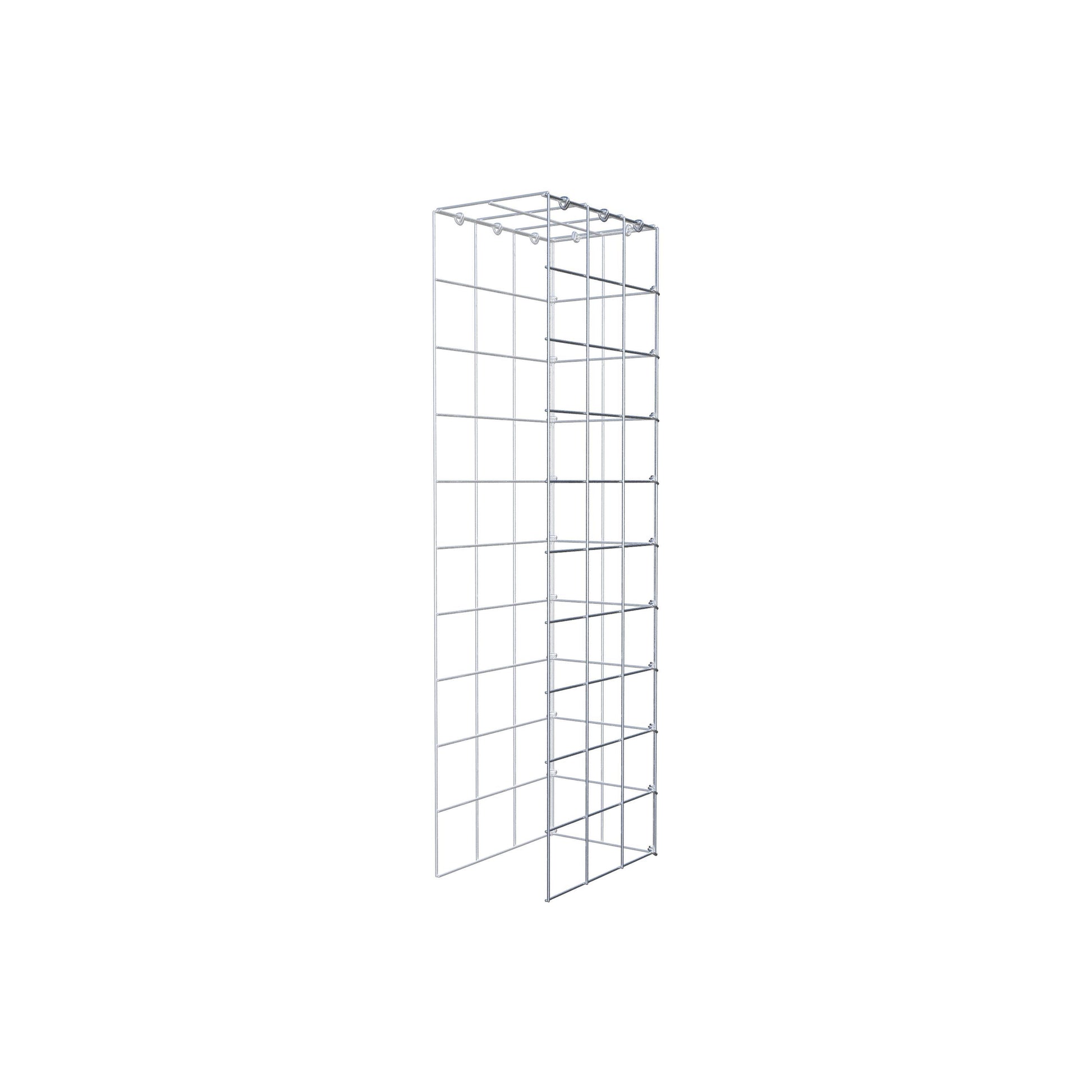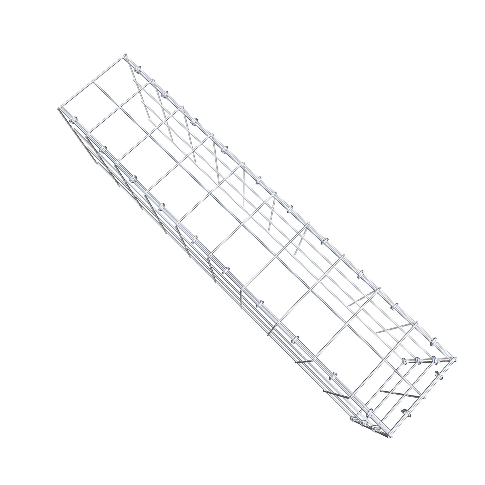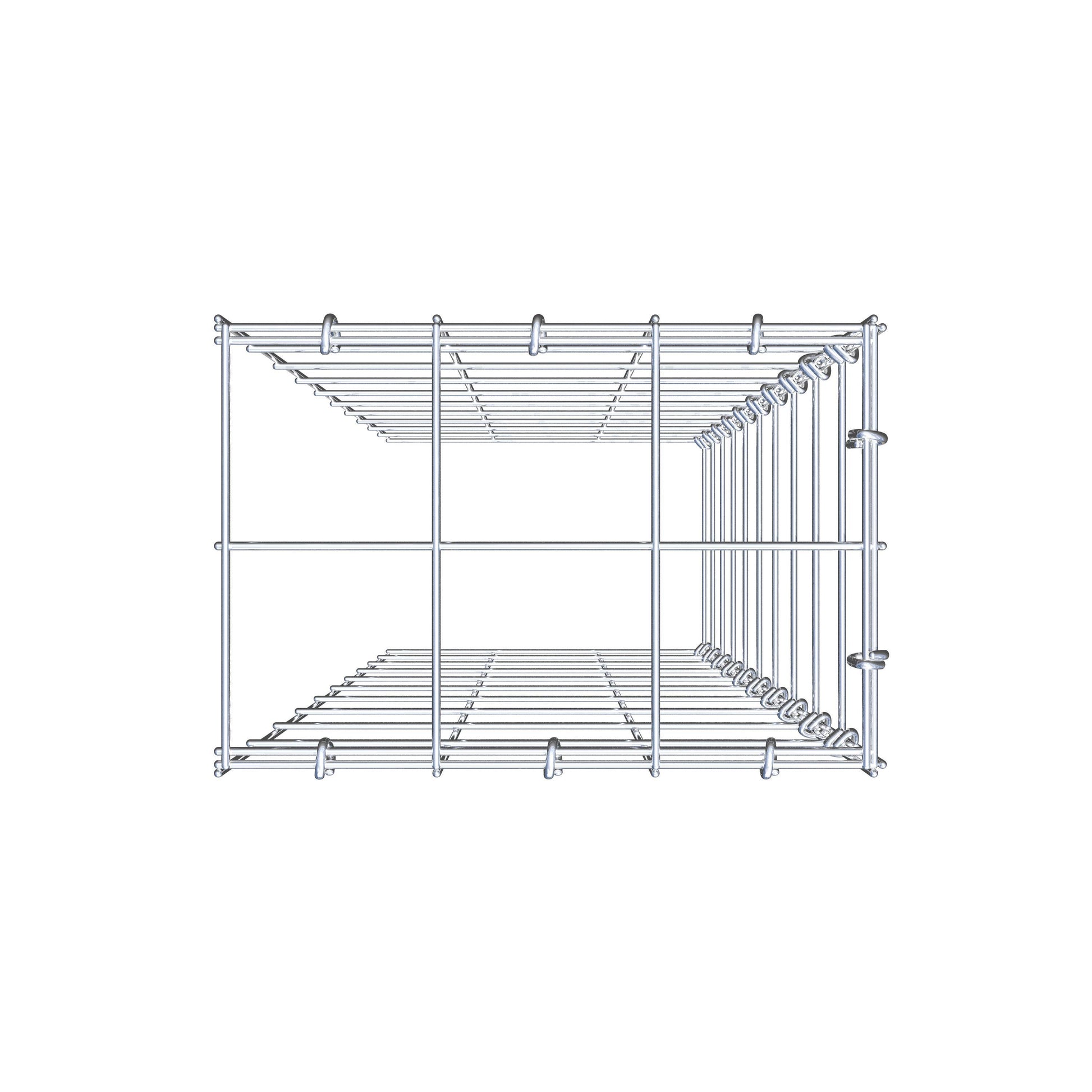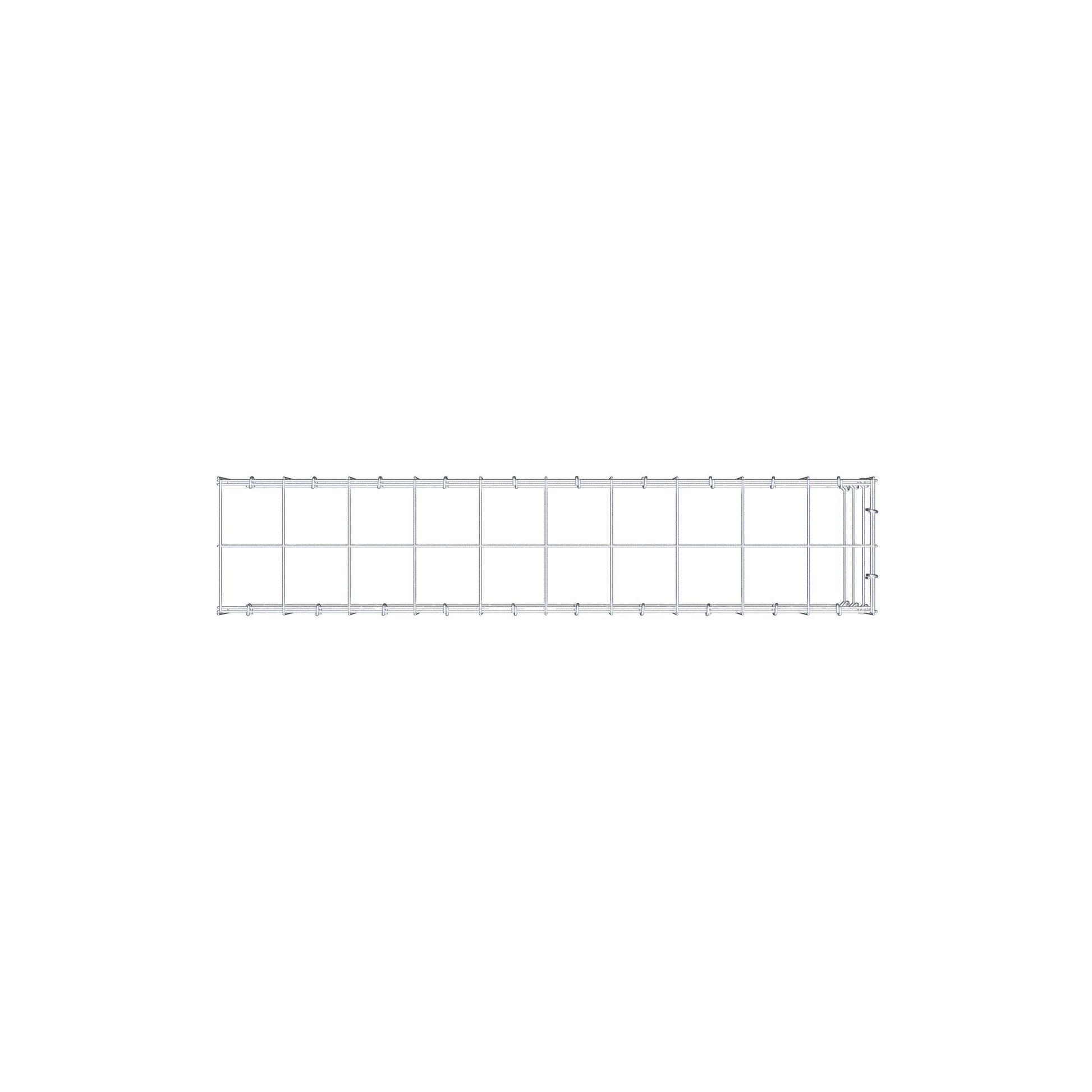 Este gabião não tem grade frontal e inferior. Isso permite que seu gabião cresça tanto em comprimento quanto em altura. Observe que o